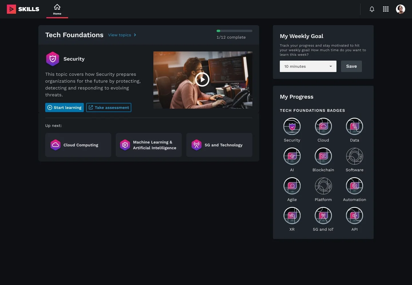 When a new learning program, Tech Foundations, was introduced this year I was asked to help create a light custom gamification framework to support learner motivation. Tech Foundations was designed to provide bite-sized content across 12 topics including agile, cloud computing, platforms, extended reality and the metaverse, automation, data, security and more.